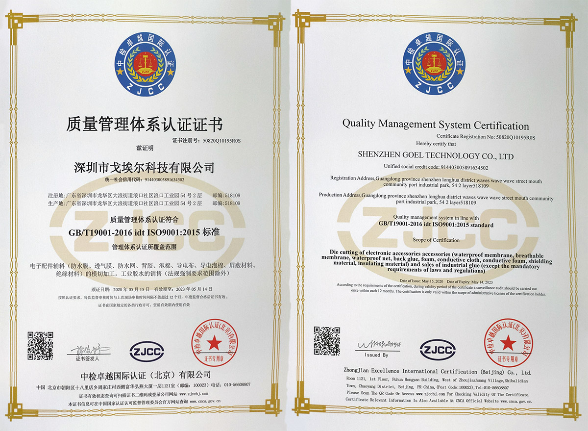 深圳市戈埃爾科技有限公司成立于2012年1月,坐落于中國(guó)經(jīng)濟(jì)改革開放的前沿——粵港澳大灣區(qū)——深圳龍華新區(qū),占地面積達(dá)2000平米.是一家專注于高功能應(yīng)用材料解決方案之防塵透氣、防水透聲、電磁屏蔽、 高功能膠粘和模切加工的公司,產(chǎn)品用于航天、航空、通訊、汽車、醫(yī)療、食品、消費(fèi)類電子等高科技領(lǐng)域,與國(guó)內(nèi)外企業(yè)和研發(fā)機(jī)構(gòu)建立了長(zhǎng)期友好的合作關(guān)系。 經(jīng)過(guò)多年的發(fā)展,公司已成為國(guó)內(nèi)防水透氣和防水透聲行業(yè)具有競(jìng)爭(zhēng)優(yōu)勢(shì)和品牌影響力的供應(yīng)商。