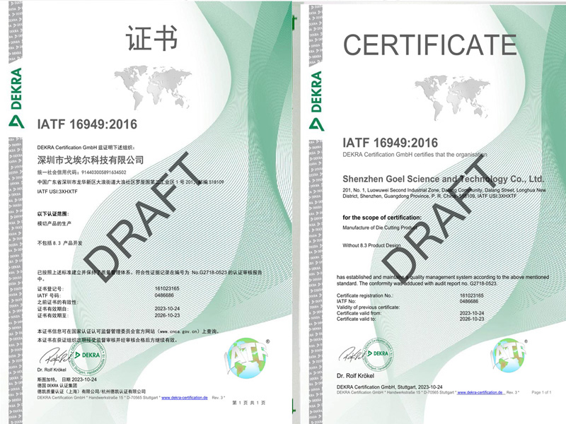 戈埃爾科技榮獲IATF16949汽車行業(yè)質量體系認證證書