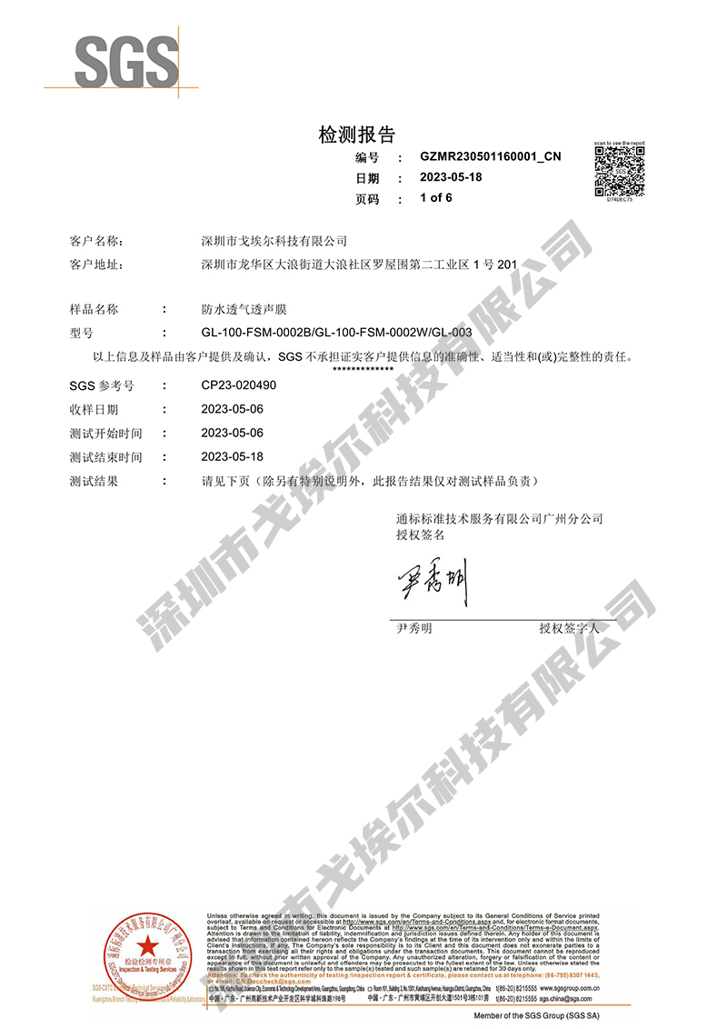 > EPTFE-防水透氣膜阻燃ROHS報告-1